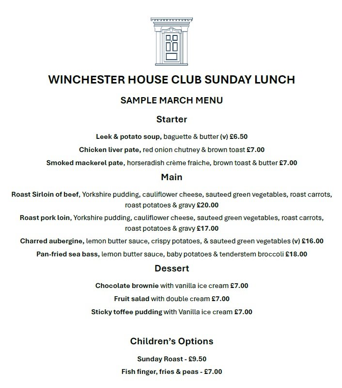 🍽️ Sunday Lunch at Winchester House Club 🍽️